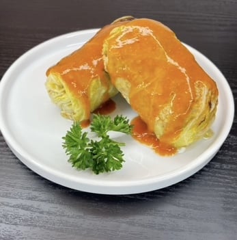 Mix of assorted cabbage roll lunch boxes that include 1 roll (beef, chicken and vegetarian), sauce on the side, Meal comes with small side salad with dressing. Water and soda.