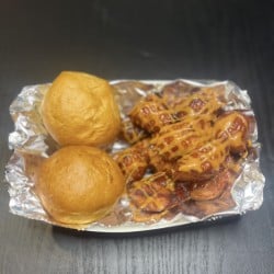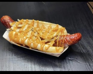 Polish sausage with bun. Served with side of grilled onion and kraut, house sauce, ketchup, mustard. Meal comes with small side salad with dressing. Water and soda.