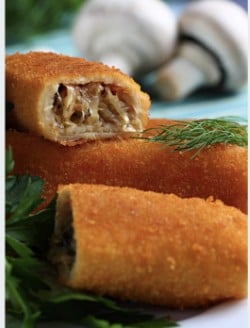 A mix of assorted Polish eggroll lunch boxes that come with 2 croquets each (mushroom and cheese, cabbage and mushroom, kraut and mushroom, beef or pork). Dipping sauce on the side. Meal comes with small side salad with dressing. Water and soda.